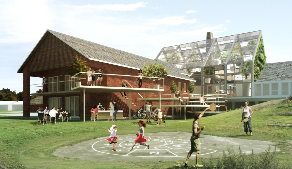 Det Nye X-Hus set fra bagsiden, med nye terrasser mv.